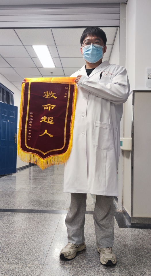 岳昕说:事后回想那一刻,我心中仍涌起一阵温暖与欣慰。作为一名医生,很多时候我们面对的不仅是疾病本身,还有患者背后的恐惧与无助。那天凌晨,患者苍白的脸庞、急促的呼吸,以及那句“我是不是要死了”至今仍清晰印在我脑海里。在排除器质性病变后,我们意识到,她最需要的也许不仅仅是一纸心电图,更是一份情绪上的安慰和紧握双手的陪伴。能够用语言和行动抚慰一颗濒临崩溃的心,让患者勇敢就医,我深深体会到这份职业的重量与光芒。当她最终平稳下来,我比任何时候都确信——医者所至,不仅是治愈,更是守护。而近二十天后,她亲自送来锦旗的那一刻,我更加感到无比的欣慰和感动,我们收获的不仅是一面旗帜,更是一份沉甸甸的信任和生命的托付。也许这就是我选择成为急救医生的意义:在风雨暗夜中,成为那盏灯、那只温暖的手,告诉每一个无助的人:“别怕,有我在!”