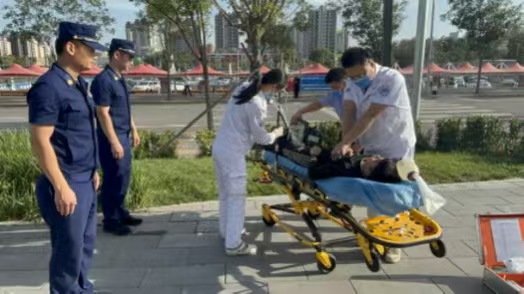 从生命体征评估、紧急抢救到脊柱固定、担架转运,每个环节衔接紧密、行云流水。在急救团队的专业处置下,“患者”生命体征逐渐平稳,被平稳抬上急救担架并固定妥当,安全转运至急救车内。随后,急救车驶离,朝着指定“医院”疾驰而去,整个救援流程耗时仅8分钟,完全契合真实应急场景的处置标准。