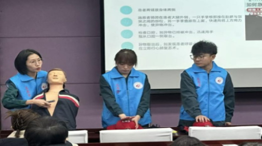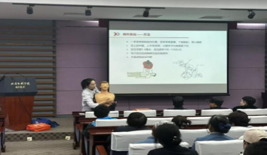 近日,北京120大兴分中心区人民医院急救中心与急诊科联合组建的医护团队受邀走进北京印刷学院,为近100名师生开展急救知识专题培训,系统传授心肺复苏(CPR)的正确操作手法、自动体外除颤器(AED)的使用方法及气道异物梗阻应急处理等关键技能,以专业力量筑牢校园安全防线。