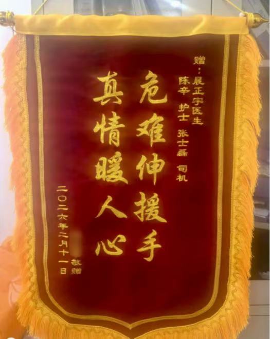 虽然院前急救的工作环境与院内有所不同,但身披一袭白衣,便意味着同样的使命与担当。每一次奔赴现场、全力抢救,背后都是一个家庭的焦灼与期盼。急救人员能做的,就是在职责所系与能力所及之间,倾尽全力抓住那一线生机。“快速中有细致,细致中有安稳”不仅是一句工作要求,更是对生命郑重的承诺。锦旗上那句“危难伸援手、真情暖人心”是肯定,也是鞭策——提醒着每一位急救人,始终做有情怀、有担当、值得托付的生命守护者。