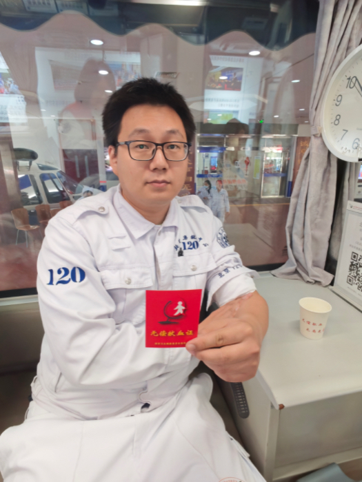 “平时我们的急救人员携带急救设备、拎着药箱诊箱,争分夺秒抢救患者;推着车载担架,一使劲就能把患者送上救护车,安全稳妥地转送到接诊医院。今天我们贡献挽袖之力,把血液献给有需要的患者,就是换个方式为他们的生命续航。”感染性疾病科科员张君楠献血后笑着说,手臂上的止血贴就像一枚小小的勋章。