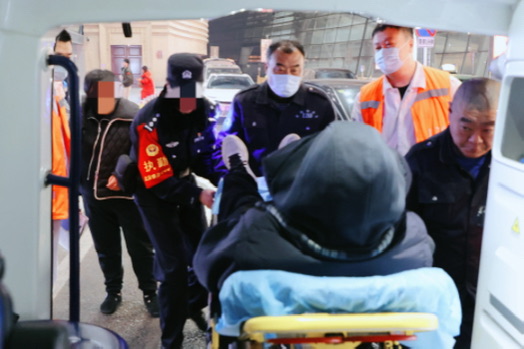列车进站,生命通道同步开启。民警与车站人员早已引导就位,急救车组无缝对接。在站台上,张瑞沉着问诊,护士陈思文密切监测患者生命体征,驾驶员段新刚、担架工李金波和民警一同稳妥转移患者,所有动作快而有序,稳而不乱。短短几分钟内,患者已被安全转至救护车上。