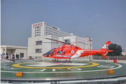2017年8月30日,为争取时间,在晨光初现之前航空救援团队急速赶往沈阳。由于此次飞行的直线距离是660公里,对于旋翼直升机是长距离转运,这也对于北京120的航空医疗转运能力提出了挑战。经过三个多小时的飞行,飞机顺利抵达中日友好医院的停机坪,中日友好医院作为北京急救中心的战略合作伙伴,建有先进的立体化的停机楼,为北京市应急救援绿色通道提供了便利,此次任务也有效检验了航空救援平台的效能。