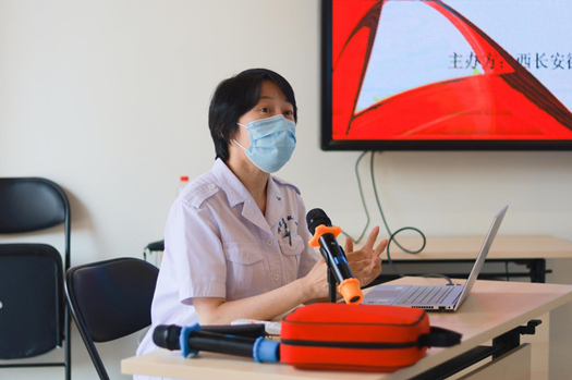首先,李斗主任向现场人员介绍了西城急救中心站院前急救工作的整体运营情况,并通过视频形式展示了院前急救工作的整体流程,结合专业知识向大家普及了脑卒中的早期识别与急救,为大家今后在日常生活中有可能突遇脑血管疾病时做好及时应对措施。